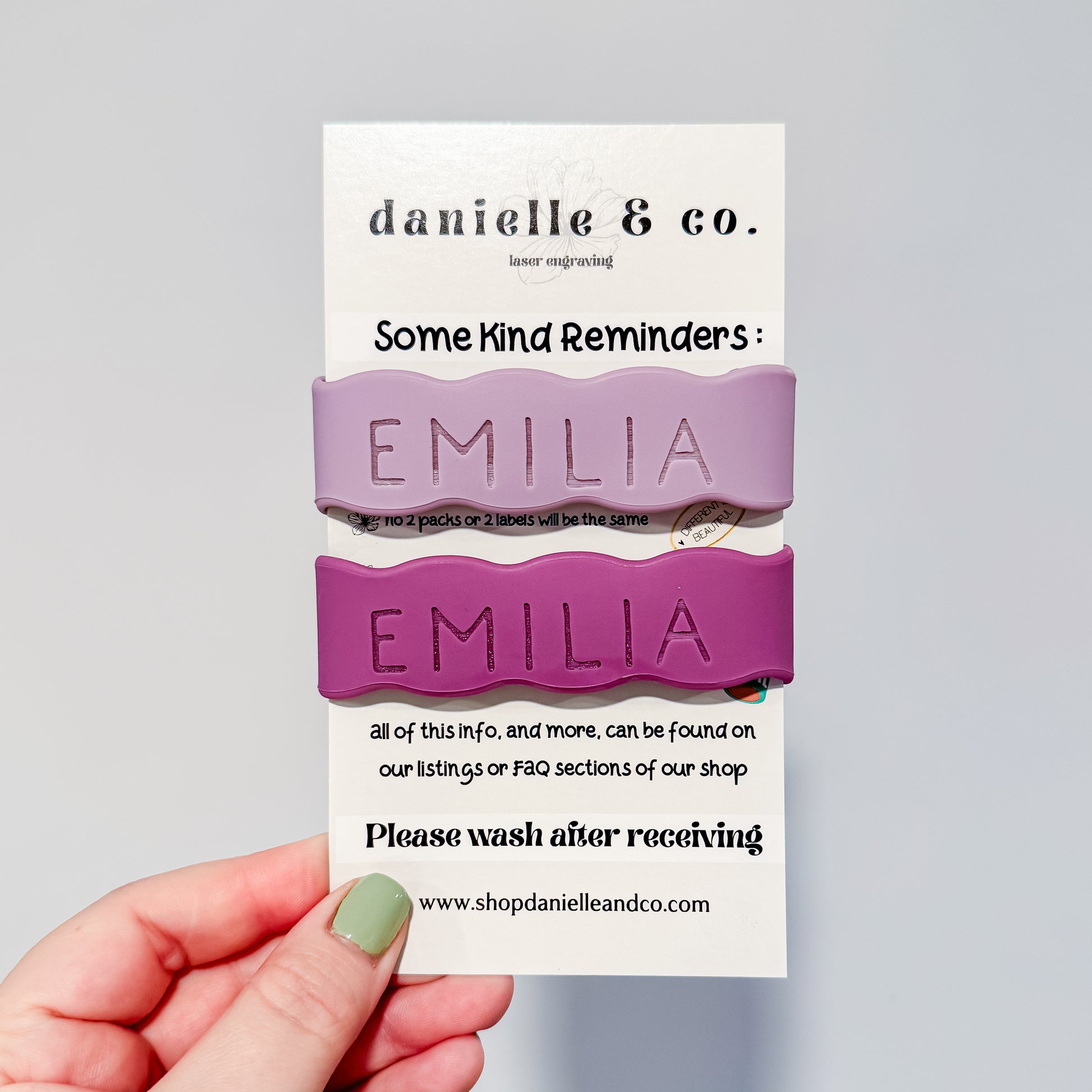 Please note: Lots of factors play into how a name will engrave. A few of those factors are font choice, name length and color of the band. If you have any questions prior to ordering about what will work best please reach out before ordering.