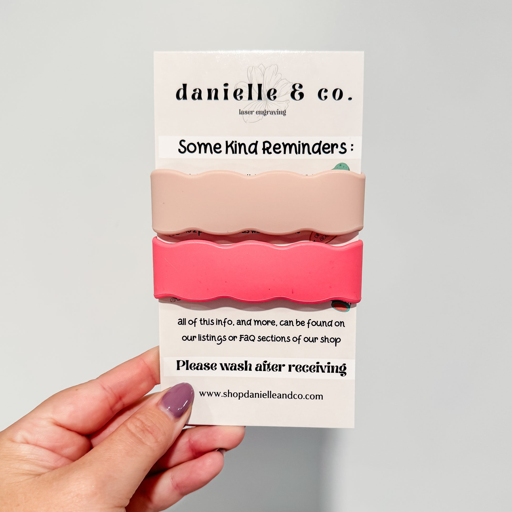 Please note: Lots of factors play into how a name will engrave. A few of those factors are font choice, name length and color of the band. If you have any questions prior to ordering about what will work best please reach out before ordering.