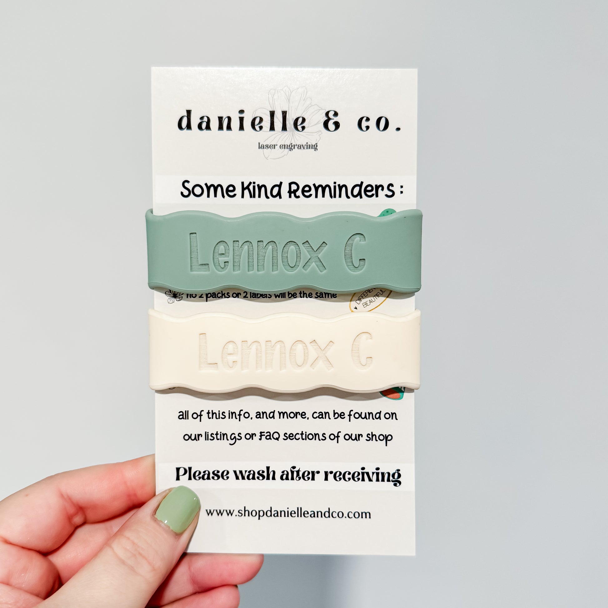 Please note: Lots of factors play into how a name will engrave. A few of those factors are font choice, name length and color of the band. If you have any questions prior to ordering about what will work best please reach out before ordering.