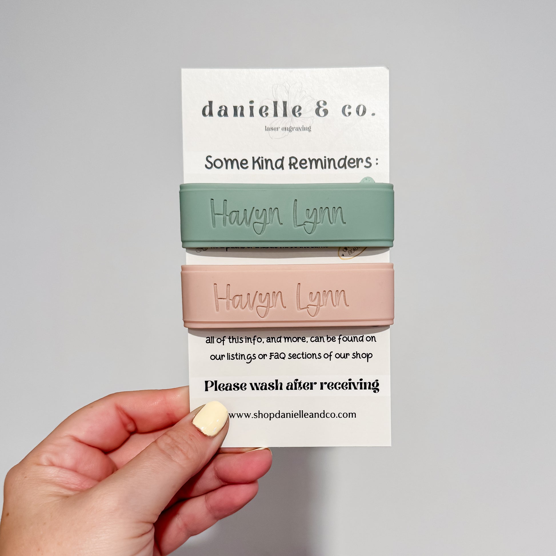Please note: Lots of factors play into how a name will engrave. A few of those factors are font choice, name length and color of the band. If you have any questions prior to ordering about what will work best please reach out before ordering.
